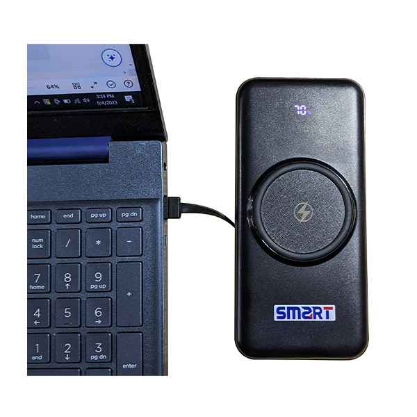 Experience the future of charging with our Wireless Charging Power Bank. Featuring both 5W and rapid 15W wireless charging capabilities, it delivers efficient and convenient power to your devices. This power bank packs a punch with a 10,000mAh cell capacity, ensuring your gadgets stay charged on the move. With dual USB outputs (5V/2.1A) and a versatile universal interface equipped with built-in Micro, iPhone, Type-C, and USB cables, it's ready for any device. Stay powered, stay SMART.